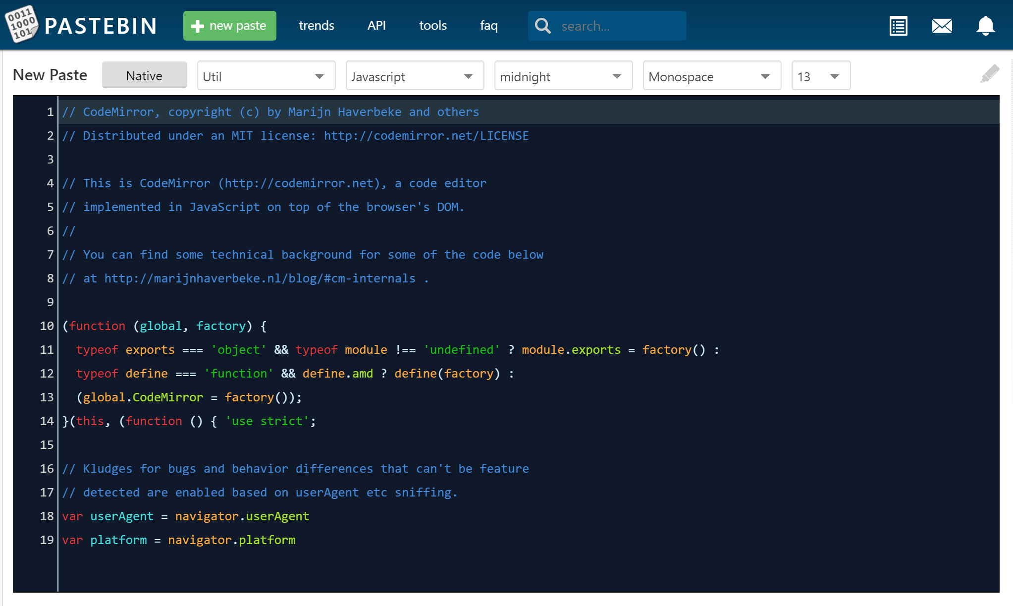 Pastebin Codemirror Editor