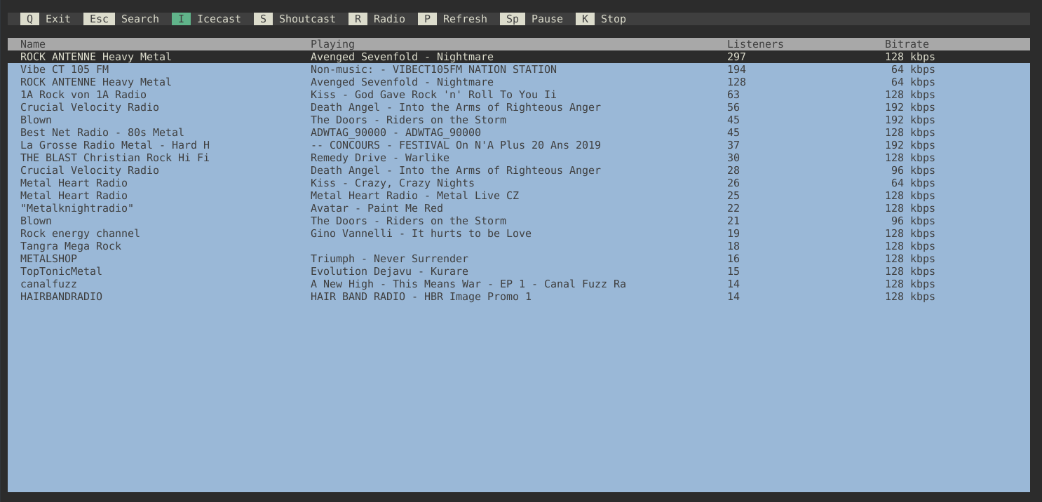 Terminal application with an ineteractable TUI to listen to net radio.